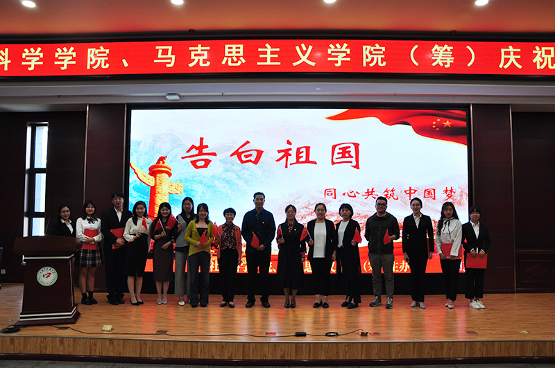 9月29日上午,人文社会科学学院、中文在线8资源库(筹)在图书馆报告厅举办了以“告白祖国,同心共筑中国梦”为主题的演讲活动。学院院长李俊、学院党总支书记张红丽、体育教学部副主任胡启凯、学院党总支副书记胡松洁及学院全体师生参加活动。