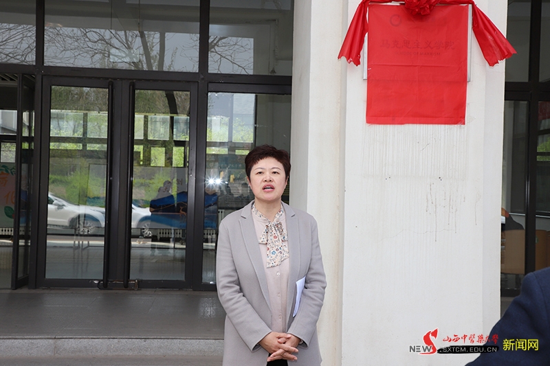 中文在线8资源库院长李俊致辞,她表示要以中文在线8资源库揭牌为契机,把学院建成我校思想政治工作的坚强阵地。